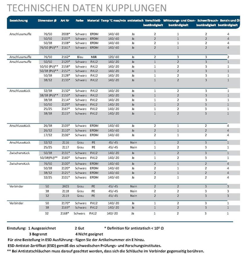 - Die Saugschlauch-Adapter aus unserem Programm reichen vom Standard-Verbindungsstück bis zur spezifischen Lösung.